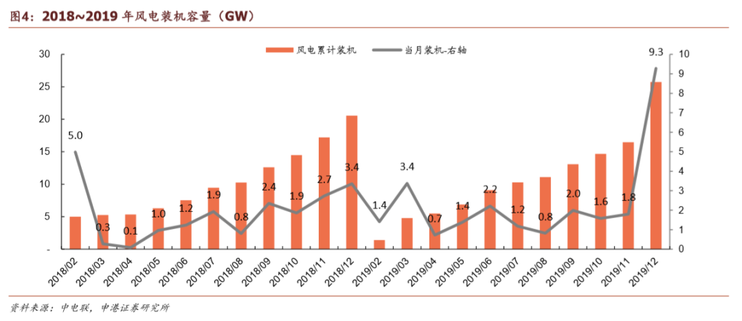 綜上所述,風(fēng)電發(fā)電建設(shè)工作方案,將確保陸上風(fēng)電平價(jià)前最后一年平穩(wěn)過渡,并且通過重點(diǎn)支持轉(zhuǎn)平價(jià)、分散式、海上風(fēng)電有序發(fā)展,平滑行業(yè)需求,提升長期發(fā)展空間,我們預(yù)計(jì)2020年風(fēng)電裝機(jī)30GW。