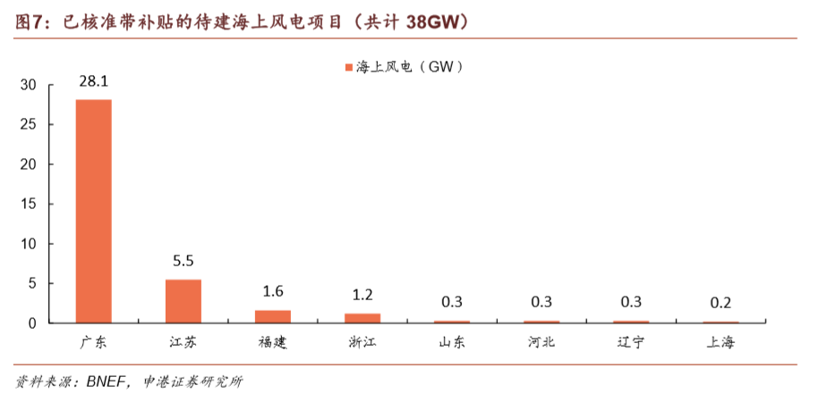 海上風(fēng)電補(bǔ)貼來源將會(huì)發(fā)生變化。自2022年起,中央財(cái)政將停止對(duì)新建海上風(fēng)電項(xiàng)目發(fā)放補(bǔ)貼,轉(zhuǎn)而鼓勵(lì)地方政府自行補(bǔ)貼,支持本地海上風(fēng)電項(xiàng)目的建設(shè)。目前海上風(fēng)電已核準(zhǔn)未建項(xiàng)目容量達(dá)38GW,主要集中在廣東。海上風(fēng)電政策的變動(dòng)以及大量核準(zhǔn)項(xiàng)目,將使得海上風(fēng)電在2021年底前迎來一波搶裝熱潮。